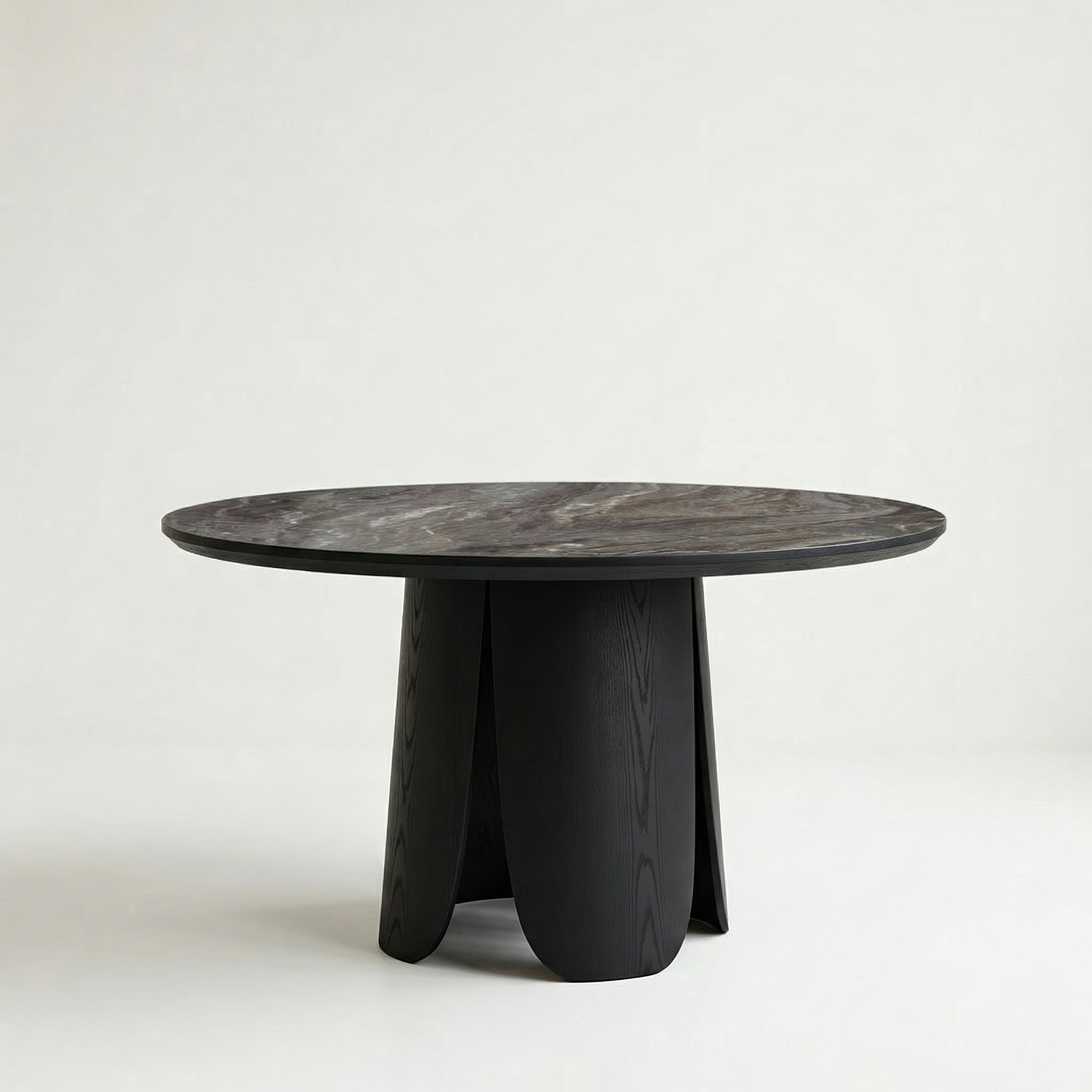 Дизайнерский круглый обеденный стол BLOSSOM CERAMIC black от MODEK HOMELIKE в натуральном шпоне дуба и керамической столешницей.